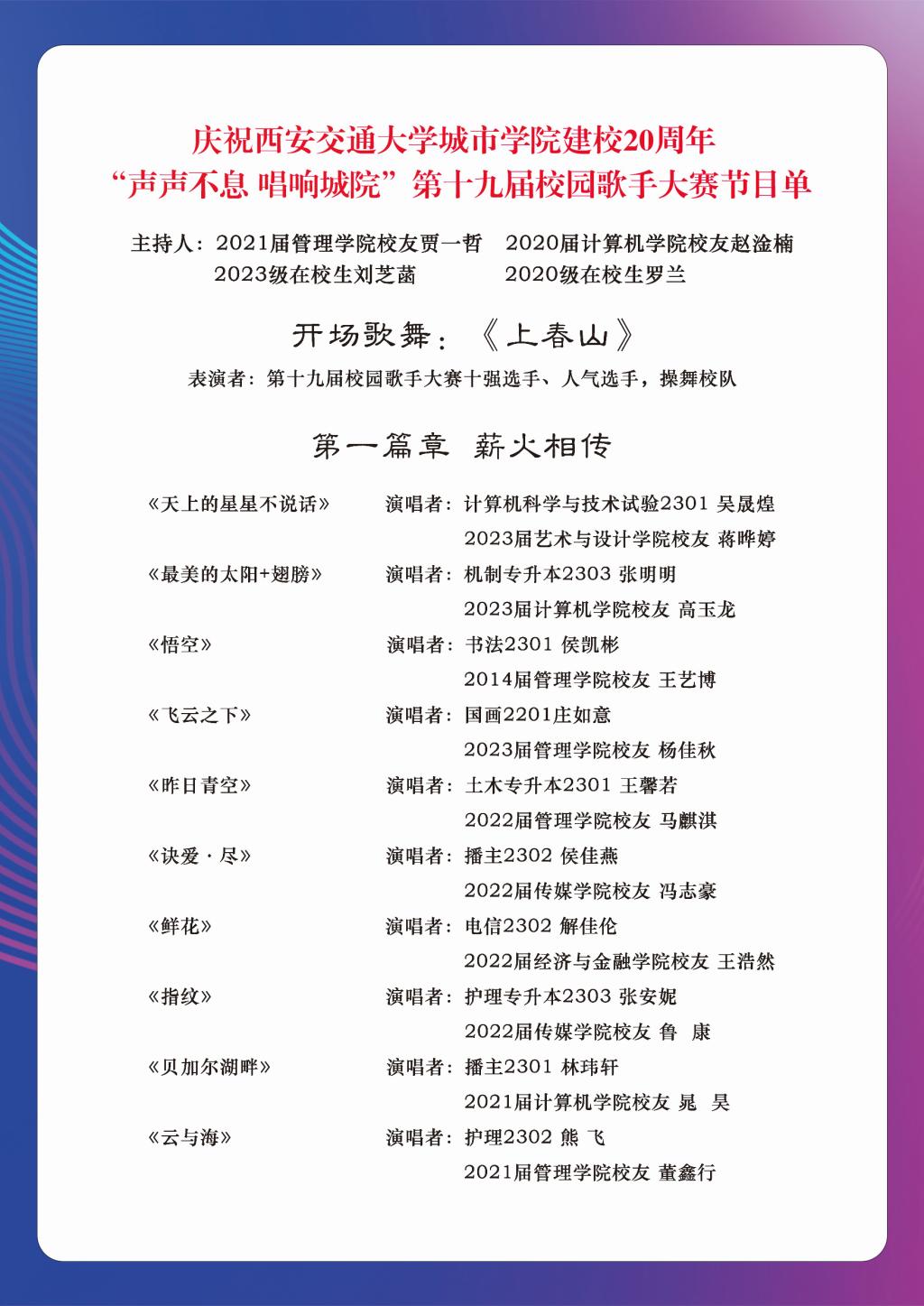 为庆祝437ccm·必赢国际建校20周年,学校将于2024年5月10日晚19:00将在校田径操场举办“声声不息 唱响城院”第十九届校园歌手大赛。
