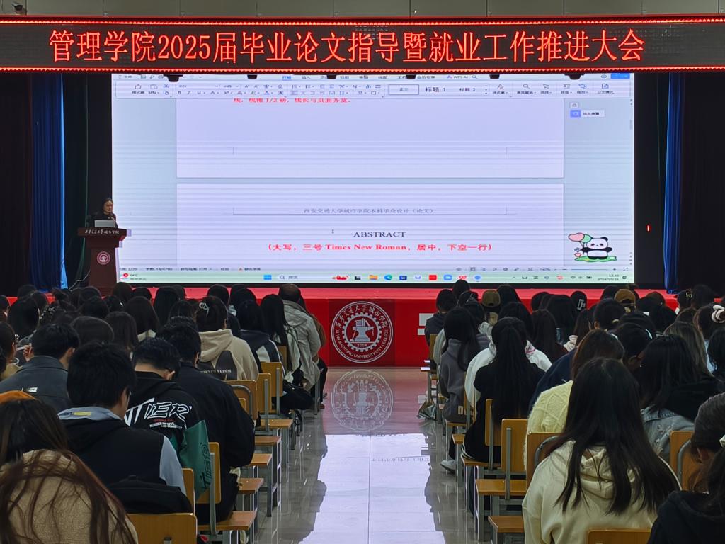 大会伊始,屈雯详细讲解了论文的格式规范,她强调了选题的创新性、现实意义和学术价值,并鼓励学生关注学科前沿,同时结合社会实际需求进行选题。随后,王佩以过往学生论文中存在的问题为例,强调了论文写作的严谨性和规范性,并指出论文撰写中存在的各类问题。她希望同学们能够认真对待论文写作的每一个环节,提高论文的整体质量。