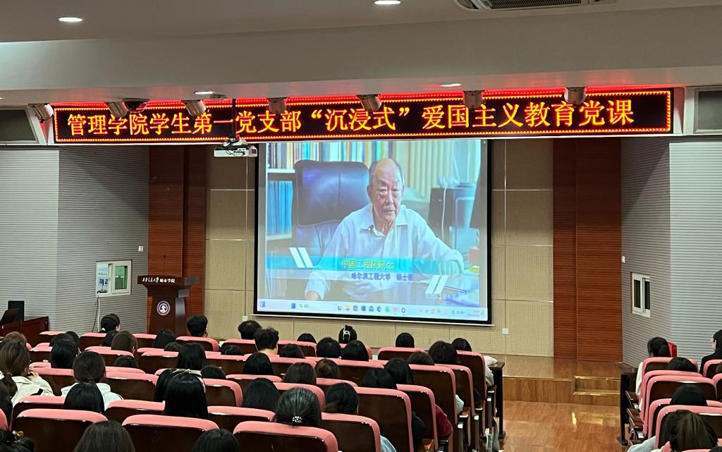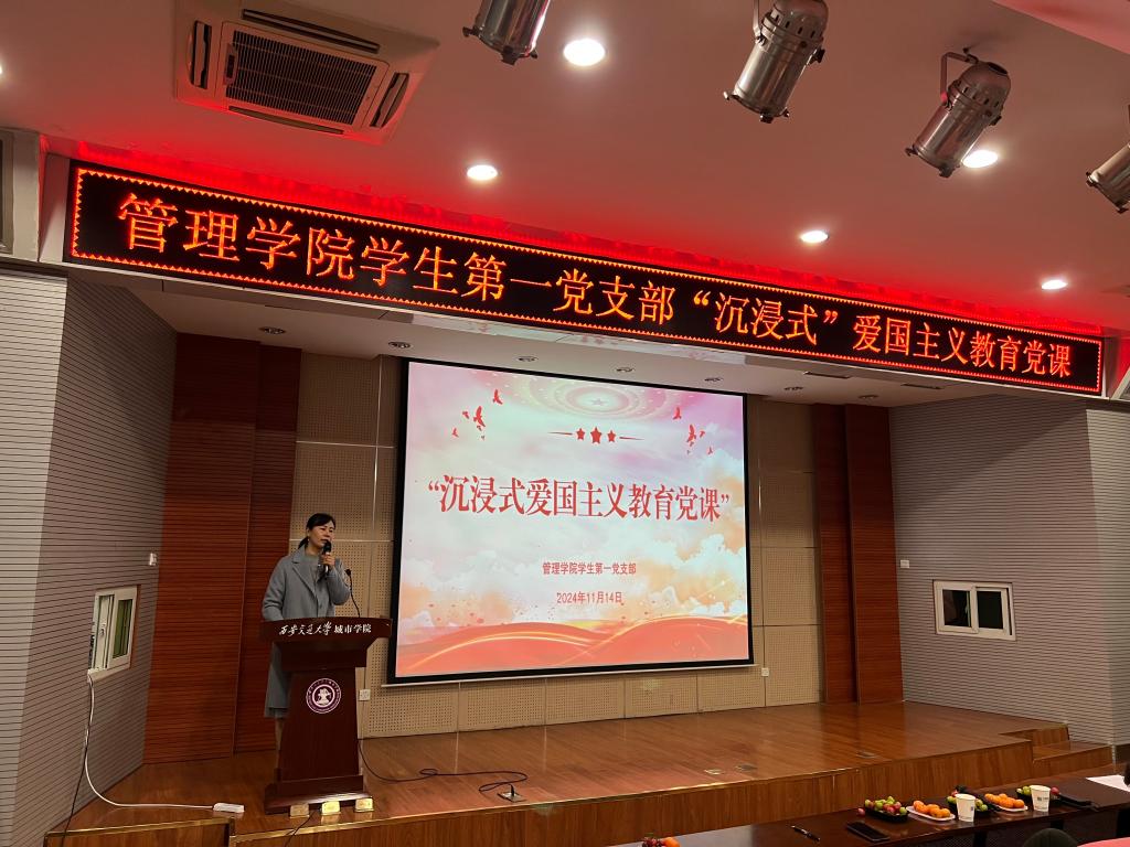 管理学院学生第一党支部于11月14日在F100报告厅开展爱国主义教育主题党课,党支部书记刘健、组织委员康轲岚、宣传委员张天源及支部全体党员和发展对象出席,会议由刘健主持。