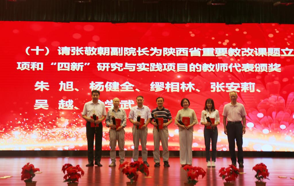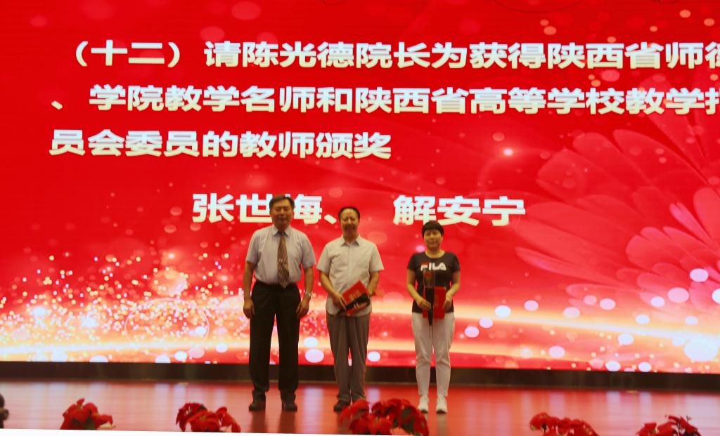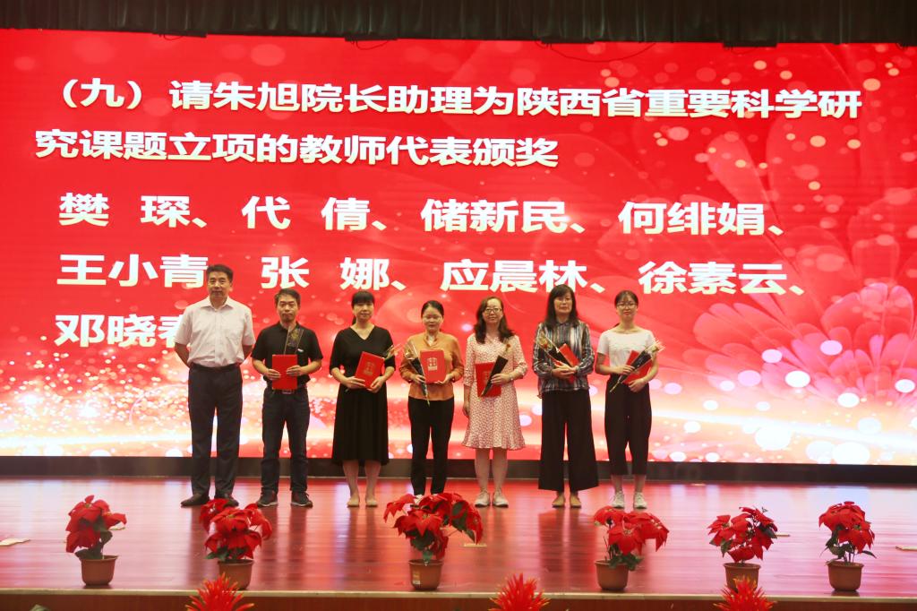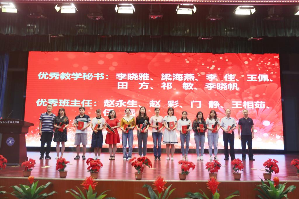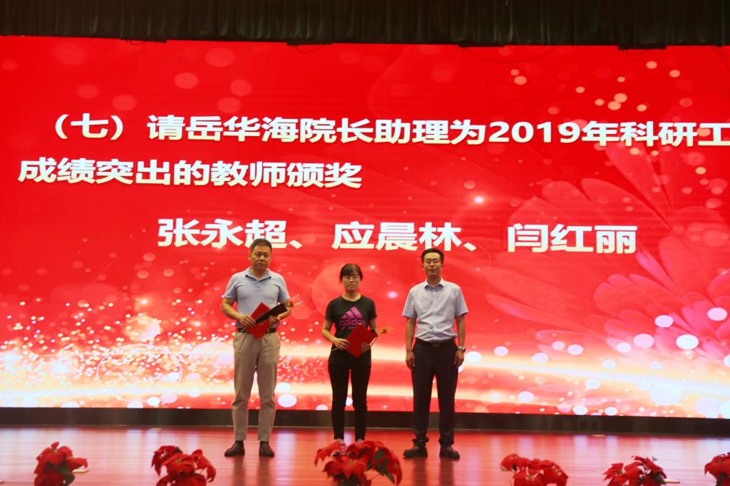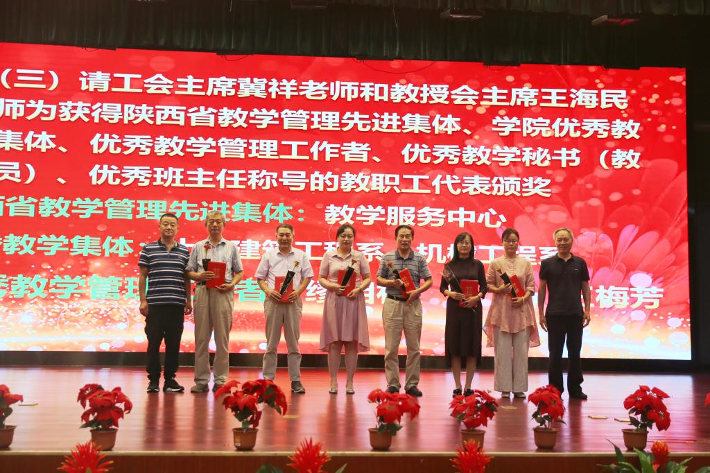 奏国歌仪式后,院长助理朱旭宣布受表彰人员名单,对一年来在教学、科研、指导学生竞赛方面取得成绩的先进个人和集体进行表彰,一大批教职员工获得国家级、省部级和校级各类荣誉称号与奖励。与会院领导分别为获奖个人和集体颁发荣誉证书,并赠送鲜花。