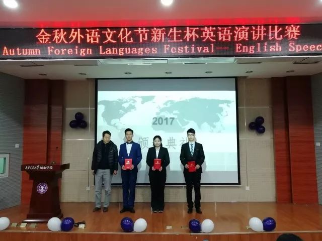 陈艺秦在英语演讲比赛颁奖仪式上,左三为陈艺秦