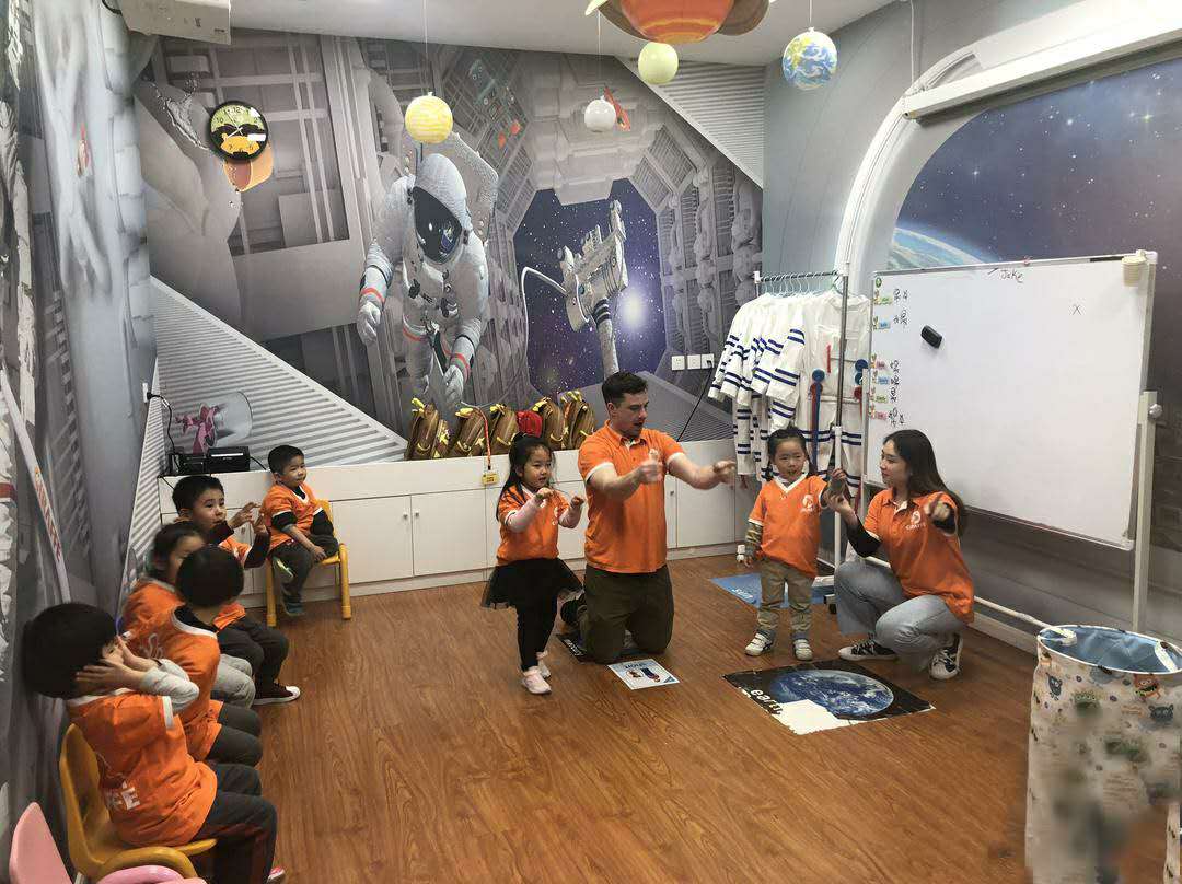 陈艺秦在英语培训机构授课中,右一为陈艺秦