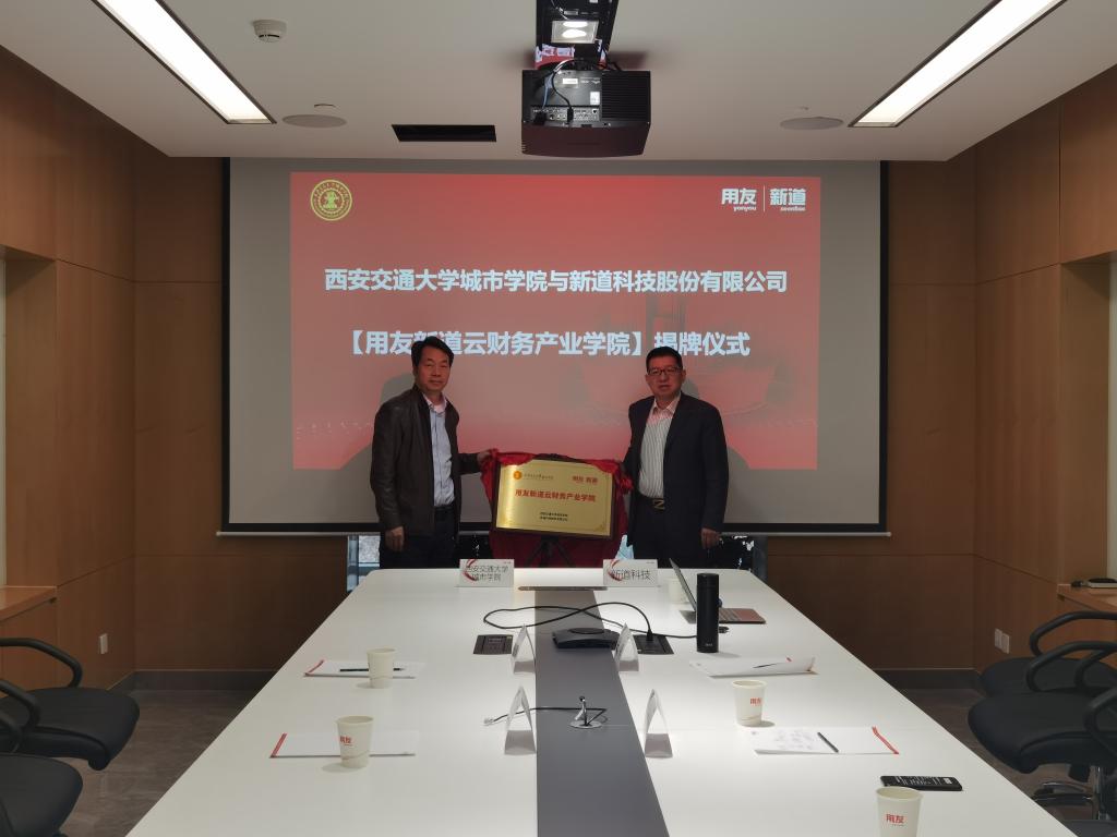 随后,双方代表共同签署了《用友新道云财务产业学院合作框架协议》,并举行了“用友新道云财务产业学院”揭牌仪式。