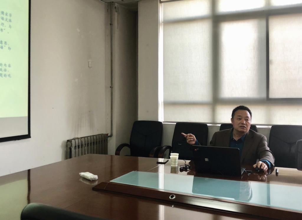 接着,王玉峰与大家分享了中国儒家经典著作《论语》的学习体会。《论语》共20篇492章,详细记载了孔子及其弟子的言行语录,王老师重点介绍了孔子为师之道的章节内容,详细讲解了全人教育、全科教育、转变教育、特色教育、因材教育、循序教育、启发教育等七项教育原则,并结合学生教育管理工作,指出要引导学生领悟“一以贯之”的道理,从而达到学思结合、知行合一。