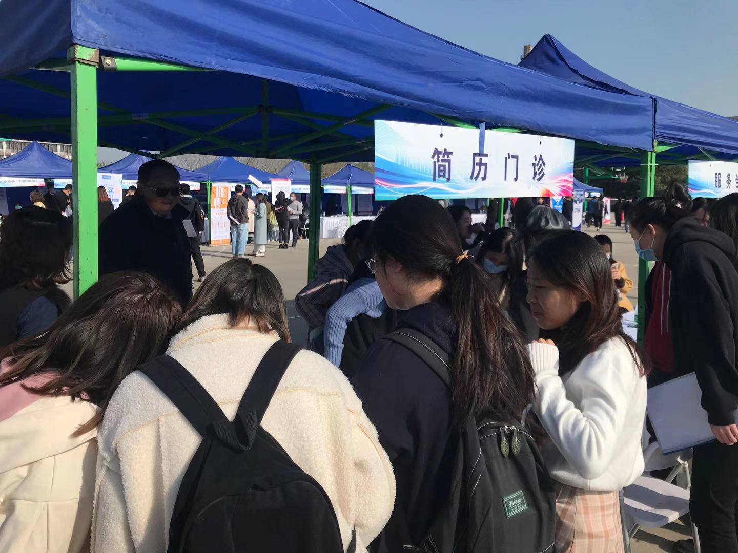 为提升同学们就业竞争力,招聘会现场专门设置简历门诊,负责大学生职业发展与就业指导的老师们全程坐诊为毕业生指导简历。同时招聘会设有总服务台、会务组、医务处、消杀区、开水处等,同时设有30名毕业生志愿者为企业代表做现场引导、服务。