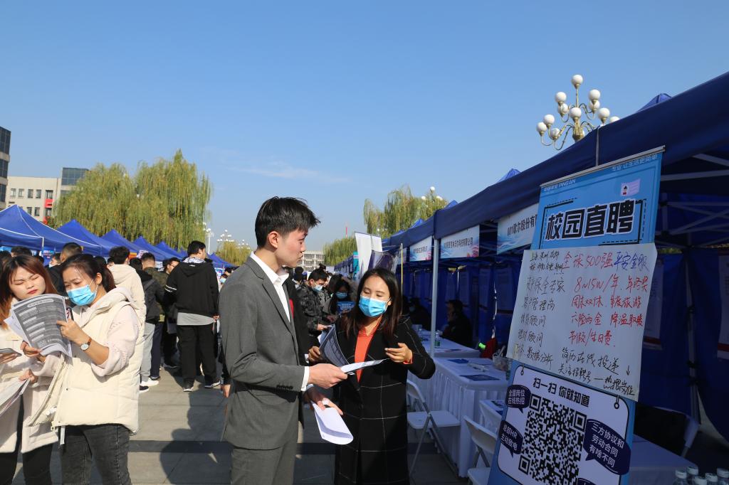 许多参会企业展位前排起了长长的队伍,学生手持简历,积极与企业招聘人员交流,努力争取自己的心仪岗位。