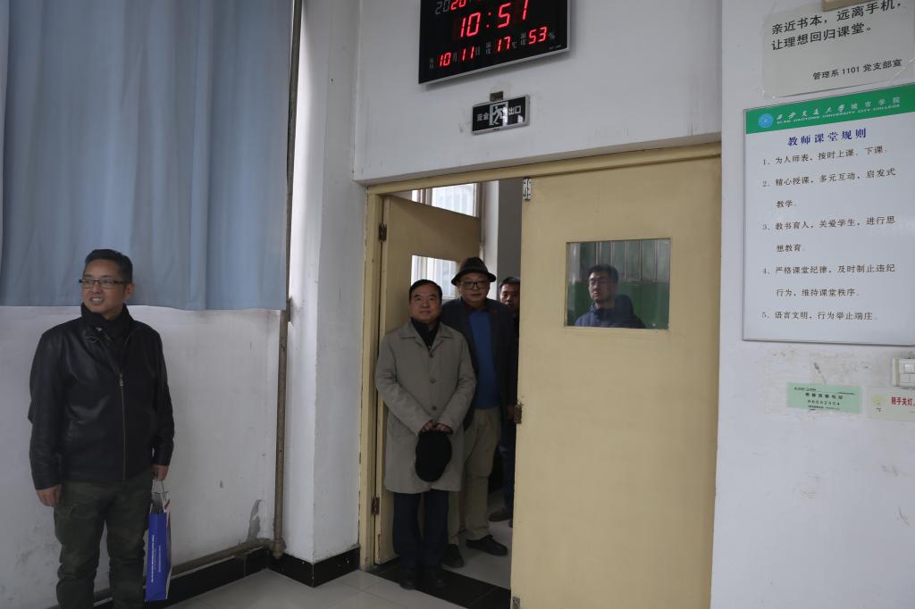 徐文雄一行通过实地察看,全方位了解学院精神文明的相关情况。分别走访了学院物理实验室、图书馆、教室、宿舍、喷泉广场等,在走访检查过程中,徐文雄与张爱萍书记从学院建设、氛围营造、思政建设等方面交流了学院精神文明开展情况及近期特色亮点工作。