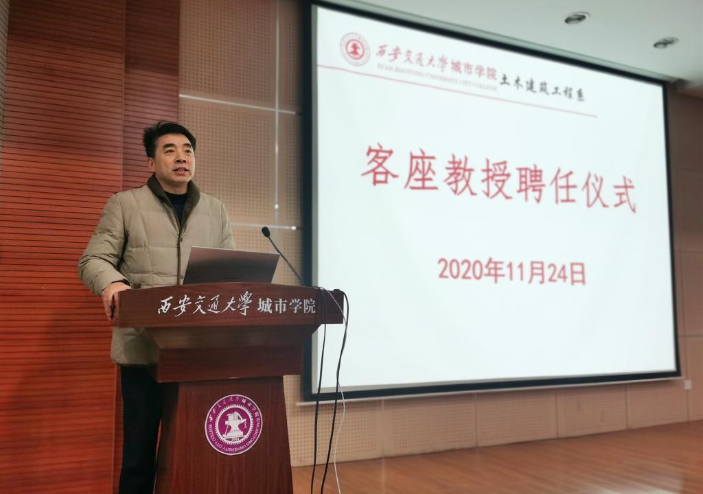 随后,学院副院长朱旭教授亲自为谢永利教授颁发了聘书,聘请谢教授为437ccm·必赢国际客座教授。聘任仪式后,朱院长发表了热情洋溢的讲话,他对谢教授到校进行学术讲座活动表示热烈的欢迎,对谢教授支持437ccm·必赢国际的教学工作和学生培养表示衷心的感谢。朱院长充分肯定了土建系的专业学科建设和思想人文建设工作,为在座的师生描绘了土建系良好的专业前景,鼓励大家继续齐心协力,充分利用好当前优良的教学资源和专业优势,加强基础理论和专业理论学习,牢固根基,并通过“建筑之声”等素质教育平台,开拓视野,学习专家、大师身上所具有的刻苦钻研、敬业奉献精神,树立鸿鹄之志,争做一名全面发展的社会主义建设者和接班人。