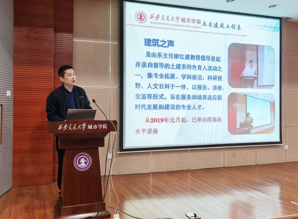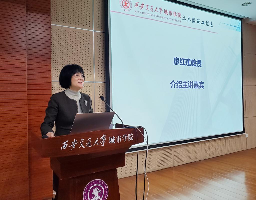 讲座开始前,廖红建教授进行了发言,她介绍了谢永利教授的履历并讲到,“建筑之声”是土建系把握新时代立德树人新要求,发扬“西迁精神”,落实学院高素质应用型人才培养大计,通过教改实践探索,打造的综合教育平台。旨在帮助学生开拓视野,树立专业自信,培育创新思维,引导学生做到“知、信、行”相统一。不断优化专业教育与素质教育,培养具有大国工匠精神的新时代建筑人才和为国家伟大工程贡献力量的工程师,是城院土建人的初心和目标,希望师生共同努力,去创造和实现梦想。