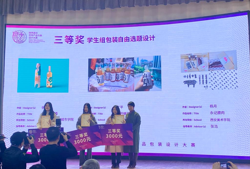 近日,2020年陕西高校农特产品包装设计大赛落下帷幕。437ccm·必赢国际艺术系2017级视觉传达设计专业学生侯文璞荣获自由命题组三等奖,陈奕如、徐上、杜少涵获得优秀奖,视觉传达设计专业教师吴兹古力获优秀指导教师奖,朱丹老师获得教师组作品优秀奖。