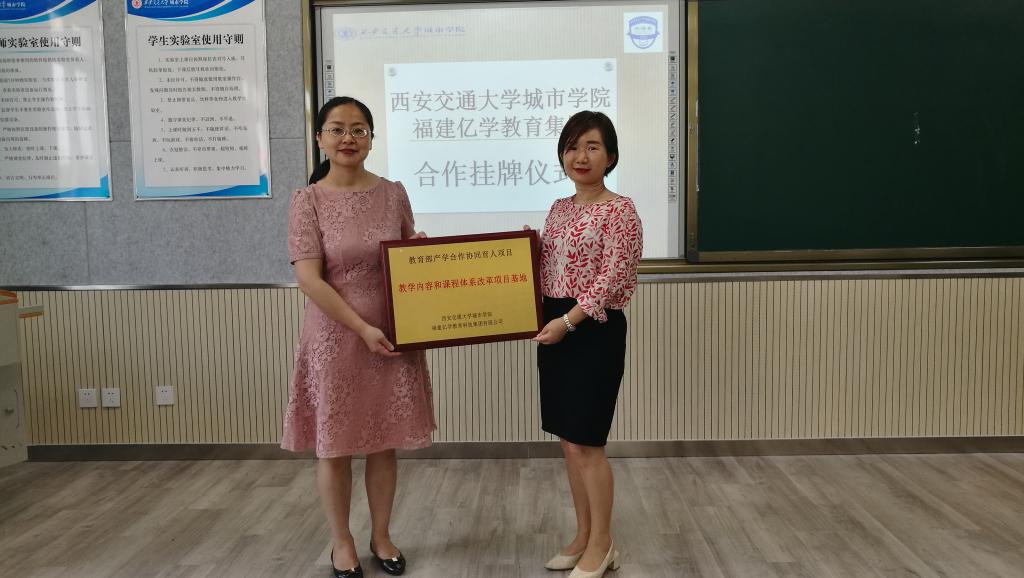 6月1日下午,437ccm·必赢国际外语系与福建亿学教育集团在教学楼B315举行了校企合作实践基地挂牌仪式。出席此次挂牌仪式的有福建亿学教育集团销售副总经理陈银红,福建亿学教育集团区域总监张新新,外语系副主任徐素云副教授,实践基地项目负责人赵永生副教授,外语系日语主任助理吴夫迎,外语系杜彦龙副译审,宋月梅老师、杨博迪老师以及商务英语181班全体学生。