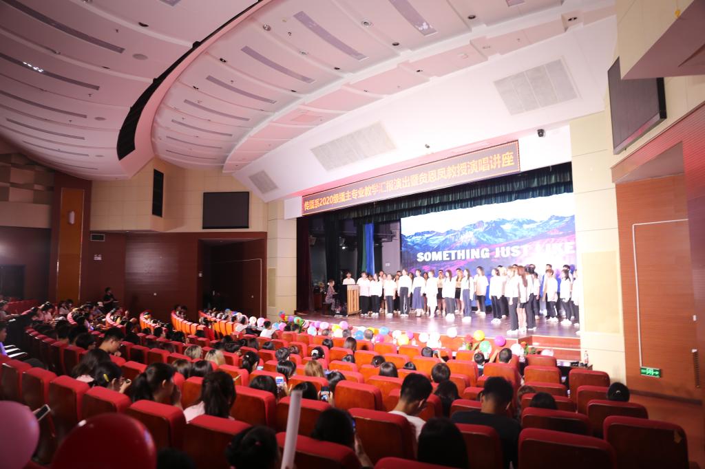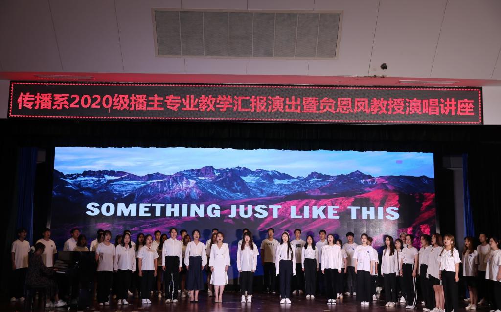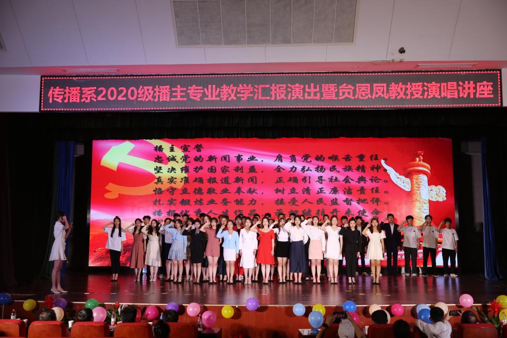 6月1日晚,437ccm·必赢国际传播系于教二报告厅举办2020级播主专业教学汇报演出暨贠恩凤教授演唱讲座。中宣部命名的时代楷模、共和国最美奋斗者、全国劳模、著名歌唱家贠恩凤教授,437ccm·必赢国际院长陈光德,副院长朱旭,院长助理徐君陶,教学中心主任陈晓南、副主任袁晓蕾、副主任张美丽,计算机系主任缪相林、艺术系主任解安宁,传播系常务副主任刘强,主任助理吴越及播音主持艺术专业全体教师,传播系2018、2019、2020级学生参加本次活动。
