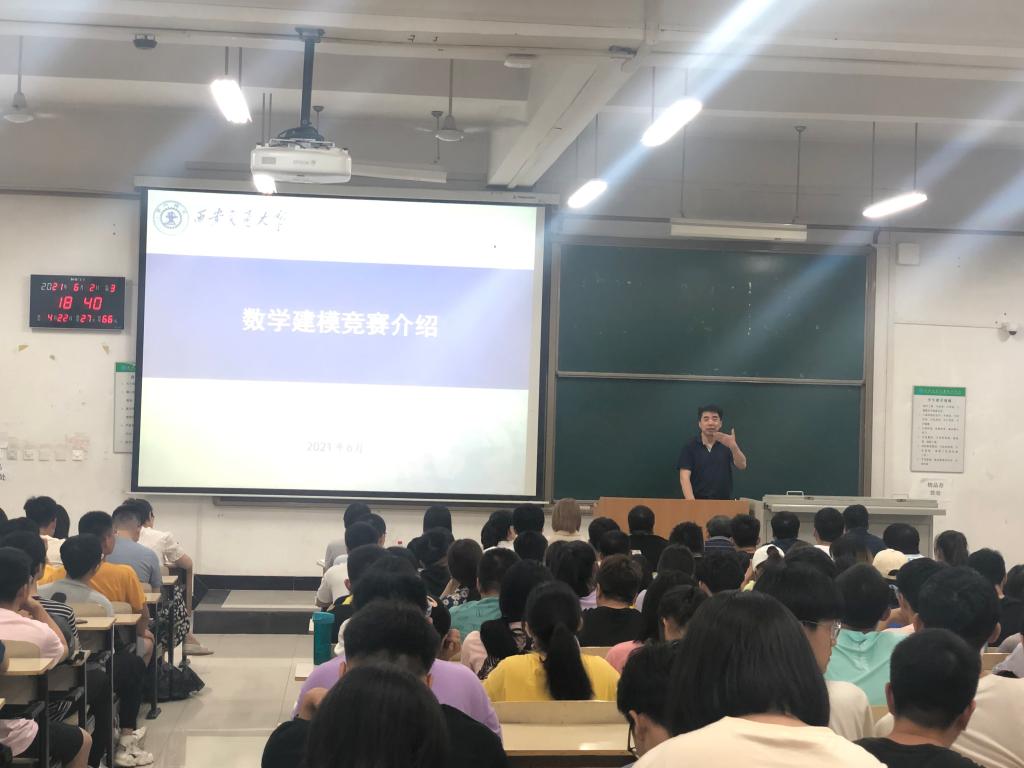 会议伊始,学院副院长朱旭教授进行赛前动员讲话,要求大家站在升学与就业的高度,深刻认识数学建模竞赛,高度重视、认真准备,鼓励大家在竞赛中积极展现自我。接着从竞赛介绍、赛前准备、论文写作、论文评阅等方面对数学建模竞赛进行讲解;其次,由往届竞赛获奖优秀学生石卓勇和徐虎分享参赛经验,两位同学分别向大家展示了自己及团队参加建模的成果,以及如何准备建模竞赛及参赛感悟;再次,数学教学部闫龙从比赛报名、赛前培训等方面对2021全国大学生数学建模竞赛作以安排。