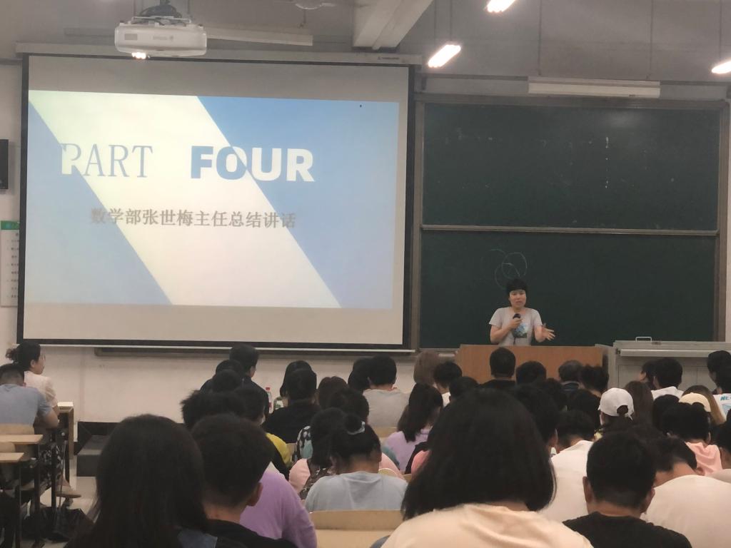 最后,数学教学部常务副主任张世梅教授进行总结发言,希望各位同学积极报名参赛、端正态度、注重团队协作、坚持到底。