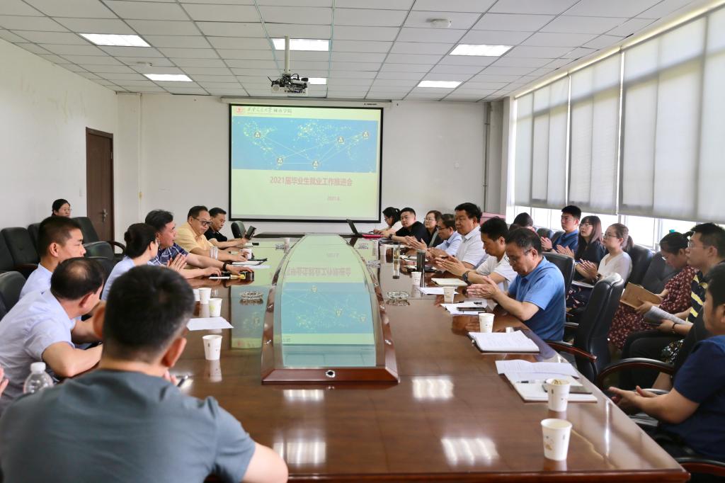 学生中心张学堂主任,从我院目前2021届毕业生的基本情况、各系就业率、各专业就业率、学院就业目标及我院下一步就业派遣工作安排等方面对我院就业工作做了汇报。