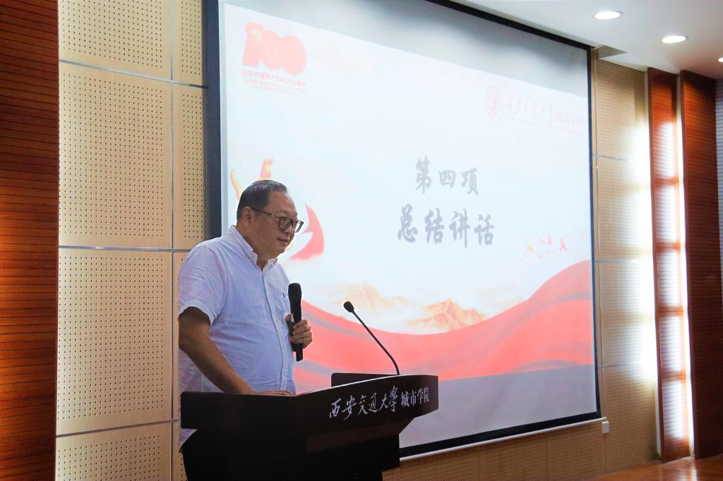 学院党委书记张爱萍总结讲话,张书记对宣讲团成员们逻辑清晰,语言生动的宣讲表示肯定,同时也对宣讲团工作提出了要求。一是希望同学们坚守初心使命,讲好党史的同时更要讲好团史,中国故事,西安故事,城院故事;二是希望大家创新形式,用“带露珠、冒热气、接地气”的群众语言,采用通俗易懂的方式,深入浅出的展开宣讲工作。三是希望宣讲团成员学史明理,学史增信,学史明志,学史崇德,学士励行,结合自身的故事,身边的故事,用我们时代精神鼓舞更多的人,让党的形象更加鲜活生动。