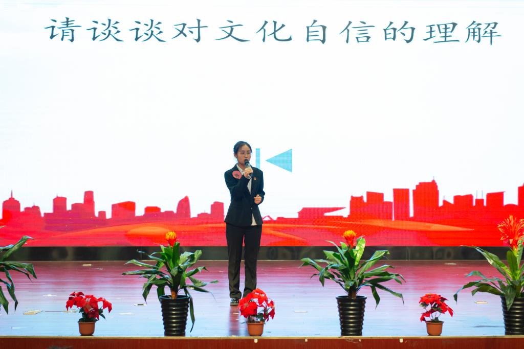 本次竞赛采取淘汰的方式进行层层选拔。其中“群英荟萃”环节,各队选手以必答、抢答的方式相互协作、分秒必争;“好戏连台”为风险答题,将文字题与视频、音频题相结合,将台上求助与台下互动相结合,现场气氛扣人心弦;在“巅峰对决”中,最终晋级的选手们淡定从容,条理清晰地展示着对“红色基因传承”、“文化自信”、“西迁精神”等理论的宣讲。而同时,中场的观众互动答题、红歌《映山红》、合唱《国家》也将现场氛围一次次推向高潮,台上台下融为一片。