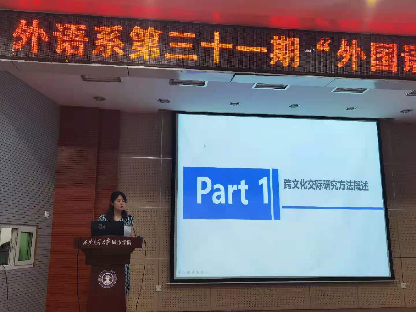 姚丹丹副教授接着进行了主题为“跨文化交际研究方法概述与实证分析”的讲座,通过对近五年国际权威SSCI期刊跨文化交际类论文的研究主题及方法的调研和分析,以及深入的跨文化定量研究案例分析,全面系统地向师生们阐释了跨文化交际研究方法,并分享了一些实证分析案例。