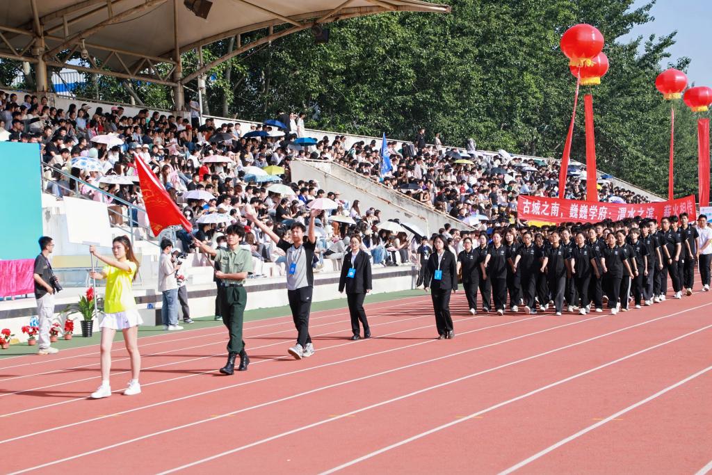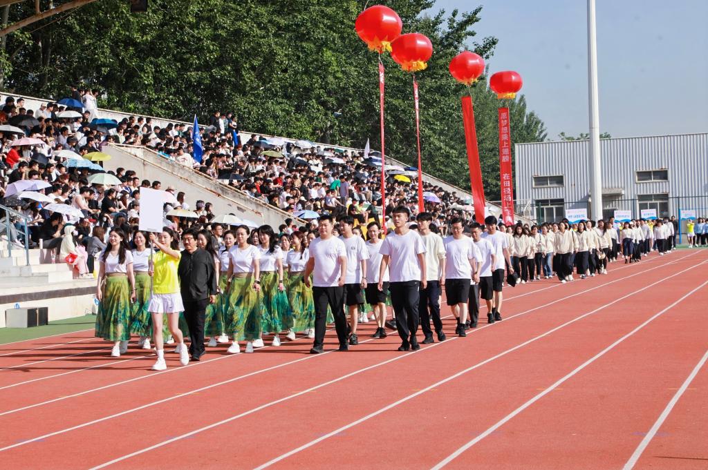 “活”力全开,当“燃”不让!青春飞扬,梦想起航!4月25日,437ccm·必赢国际第十五届田径运动会开幕。参加开幕式并在主席台就座的领导有:437ccm·必赢国际校长陈光德,党委书记张爱萍,党委副书记、副校长陈书荣,副校长朱旭,副校长岳华海,工会主席冀祥及各二级学院(部)、处(室)负责人。开幕式由体育部主任闫振龙主持。