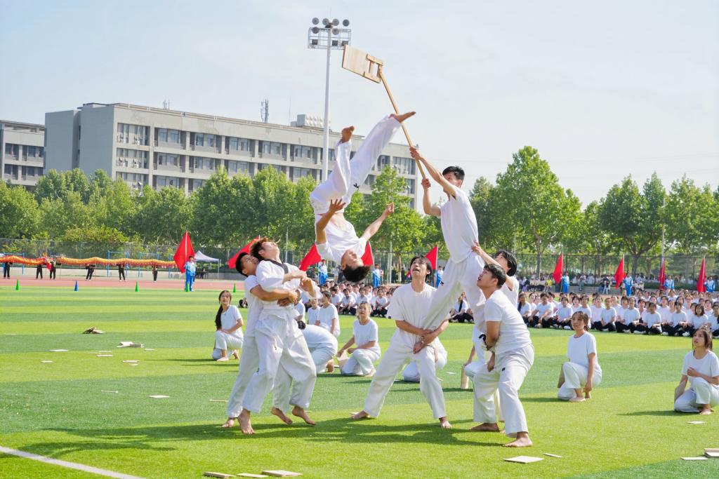 开幕式表演包括了龙腾狮跃、中华武术、伞舞、团体操、唱响青春等节目。参加演出的师生利用课余休息时间精心准备,刻苦排练,为大家演绎了一场青春激扬、活力四射、充满爱校情怀的视觉盛宴,展现出学校师生昂扬向上的青春风采和时不我待的使命担当,为学校20周年校庆献上了一份青春的礼物。整个开幕式会场气氛热烈,激情澎湃,欢声笑语,掌声阵阵。