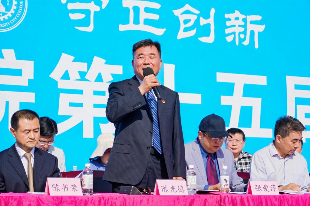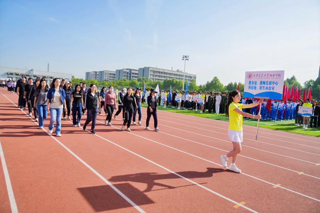 党委书记张爱萍致开幕词。他对本届运动会的召开表示热烈的祝贺,向为本次运动会积极筹备的老师和同学们表示衷心的感谢。张爱萍书记回顾了过去一年学校的体育教学工作,指出学校优化体育课程设置,深化体育教学改革,完善学生体质健康标准实施办法,大力实施学生素质拓展计划。通过一系列的教学改革,学生课外运动参与人数实现新高。学校不断改善运动场馆条件,为发挥体育的育人功能创造良好条件。一年来,在全校师生的积极参与和共同努力下,学校的竞技体育成绩斐然,群众体育运动蓬勃开展。他希望师生们养成阳光运动、健康生活的好习惯,努力使体育运动成为学校蓬勃发展的推动力量,从体育运动中获得受用终身的意志品质和健康体魄。希望全体运动员、裁判员、教练员、工作人员、志愿者们在比赛中挑战自我,赛出风格,赛出水平,用拼搏的汗水、昂扬的姿态,展现每一位城院人的生活态度和精神面貌。