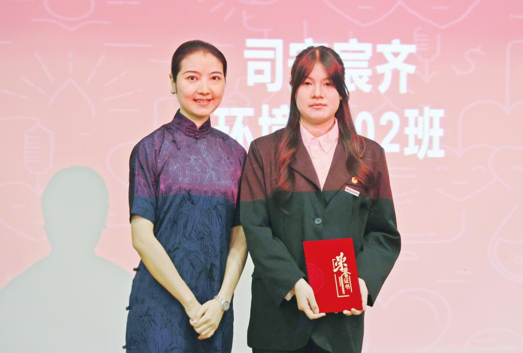 “奇点”奖学金学生表彰环节中,艺术与设计学院院长解安宁教授宣读表彰决定,捐赠方代表向获奖学生颁发荣誉证书,获奖学生代表司安宸齐在发言中表示,定不辜负企业的爱心之举,会常怀感恩之心,用实际行动回报父母、回报母校、回报社会。