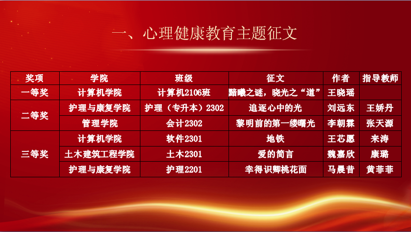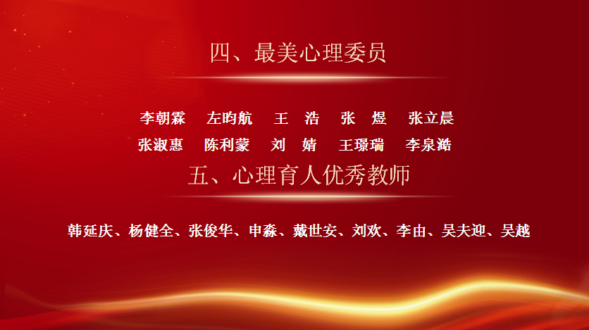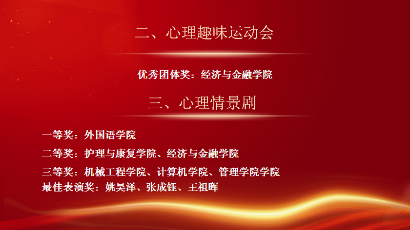 情景剧结束之后,学生处姚敏副处长宣读了《关于表彰第十六届心理健康教育活动季优秀组织单位和个人的决定》。为进一步做好心理育人工作,我校于3-6月举办了第十六届“阳光护航”心理育人宣传季系列活动。本届活动季组织开展了心理游园会、主题征文活动、心理趣味运动会、心理情景剧、团体辅导等活动,普及了心理健康知识,提升了学生的心理素养。在活动季中涌现出了一批表现突出的集体和个人。与会领导对第十六届宣传季优秀个人及集体进行了表彰。