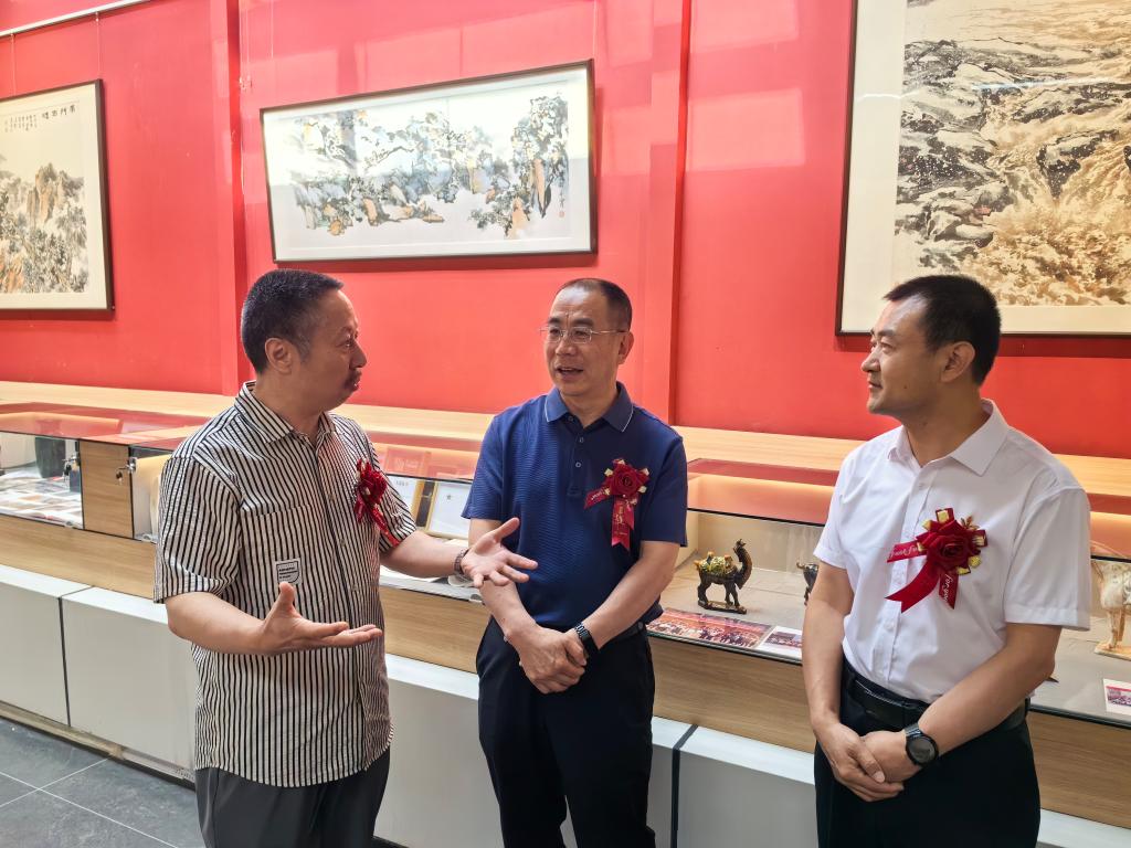 此外,本次国画作品展开幕式结束后,在学校兼职教授、延安市新区管理委员会总规划师景辉的陪同下,学校党委副书记、副校长陈书荣,工会主席、党校办公室主任许恩奇一行参观了延安新区规划展厅和延安学习书院。在贵人峁上,他们实地俯瞰了延安新区的规划建设情况,对新区的发展成就和规划理念给予了高度评价。景辉教授与陈书荣副校长就延安新区建设历程、校地合作发展方向等内容进行了亲切交谈,双方均表示将继续深化校地合作,实现资源共享、优势互补,共同推动地方经济社会的稳步前行与持续发展。