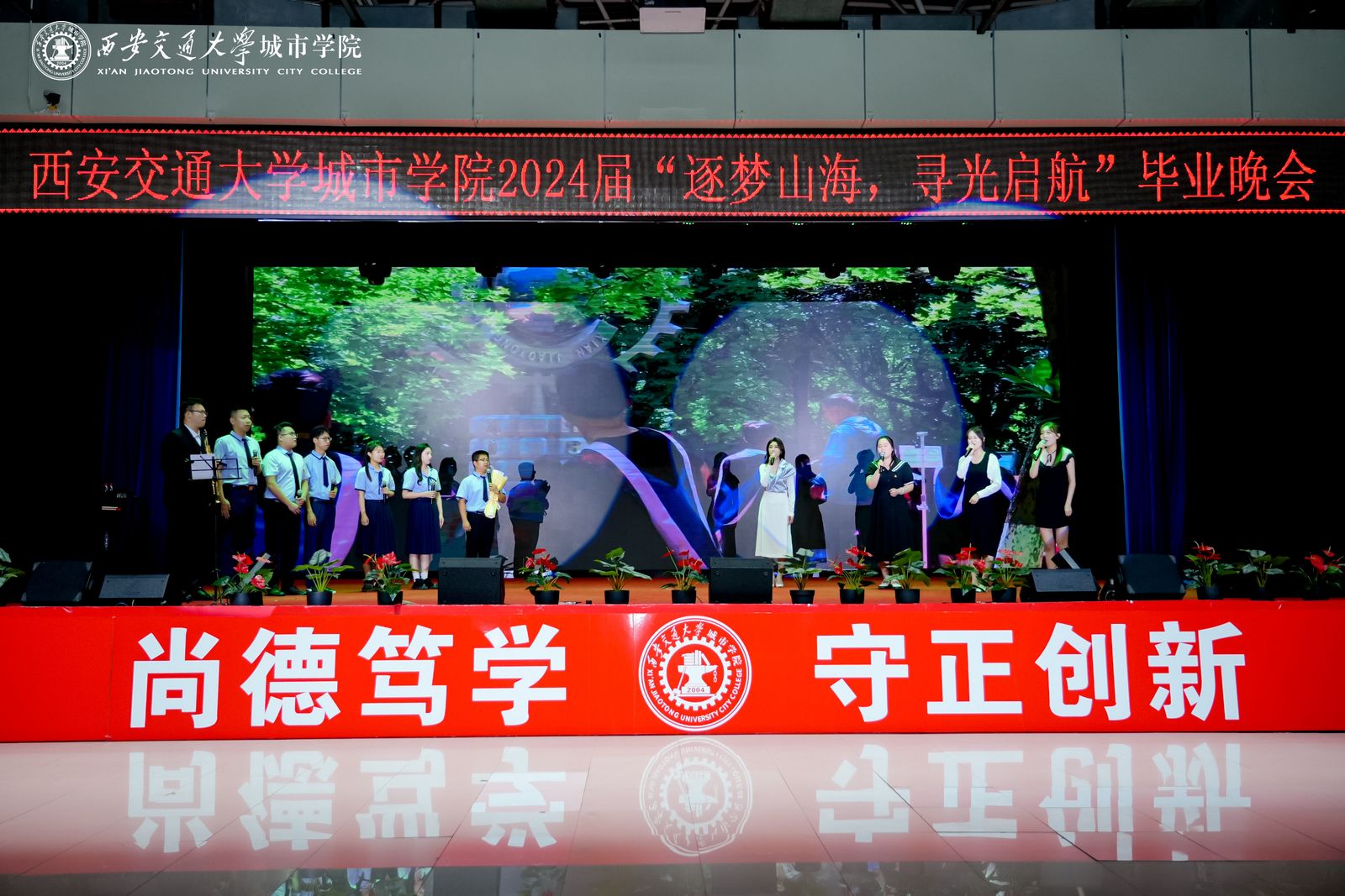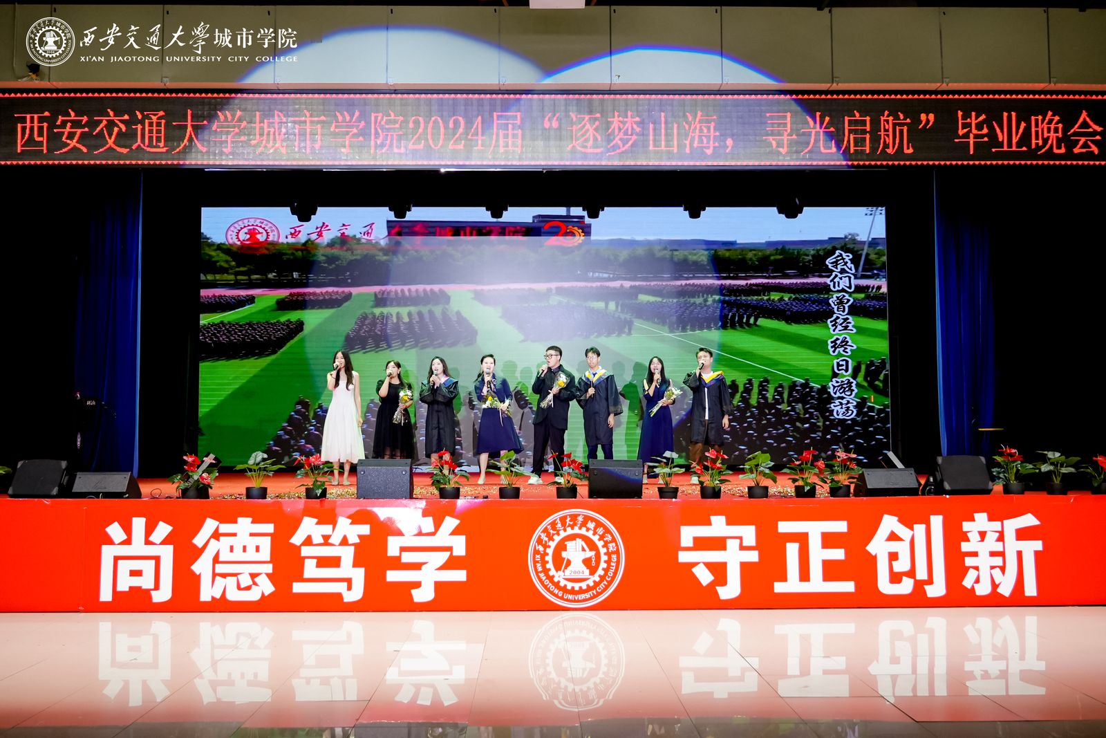 最后,晚会在《友谊地久天长》的美妙旋律中落下帷幕。愿我们与城院的友谊如同这首歌曲所唱,天长地久,永不磨灭,祝愿所有2024届毕业生,毕业快乐,前程似锦,一路生花。