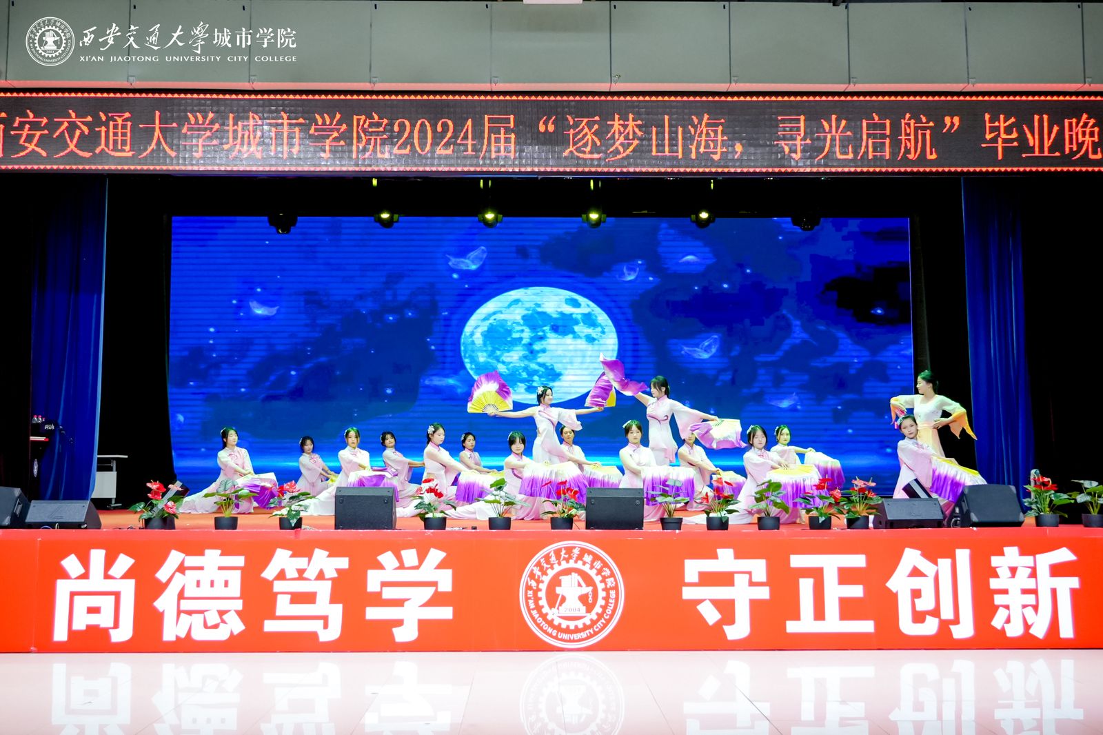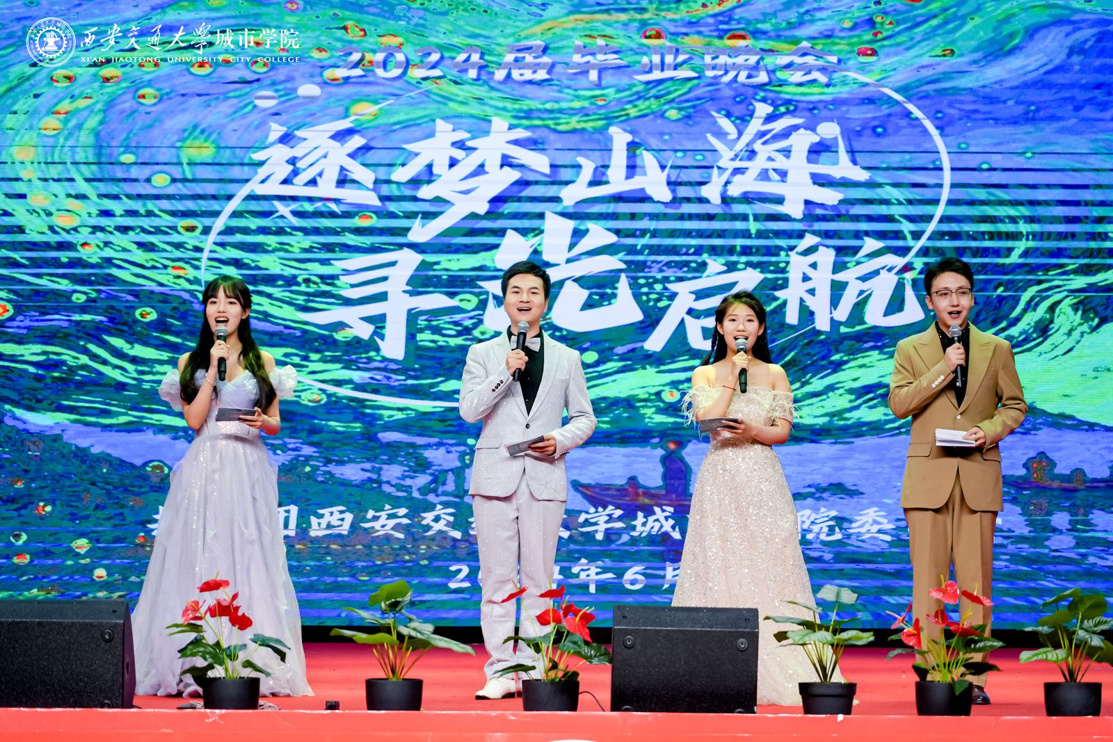 本场晚会分为三个篇章,分别是寻光·筑梦、山海·启航、行志·未来,寓意我校2024届毕业生将奔跑在山海间,寻着光的方向,勇敢逐梦,不断前行!