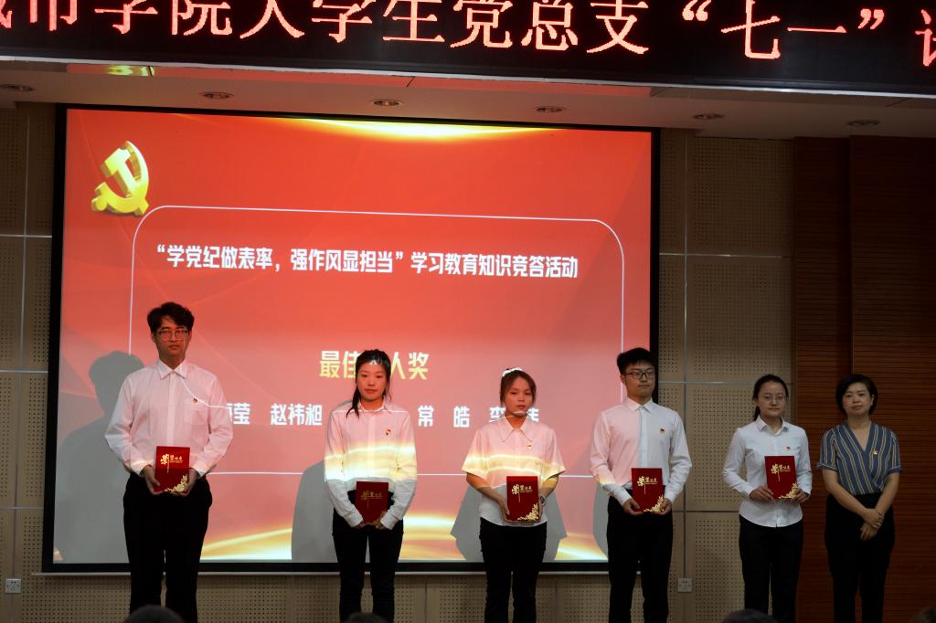 党总支常务副书记辛红伟首先向获奖集体和个人在学习、工作和模范作用发挥等方面取得的成绩和付出的努力表示赞赏。同时,他向各学生支部及学生党员提出了三点希望和要求,一是希望学工系统全体党员要做理想信念的坚守者、创先争优的引领者、职责使命的担当者、干事创业的奋斗者。要把“尚德笃学,守正创新”校训根植于心中,践行于工作和学习实践中。二是希望学工系统全体党员要勇于追求一流,要树立标杆意识,一流意识,在学校高质量发展的征程中,强化“争先争优”的意识。三是希望学工系统全体党员要扎实工作、努力学习,各支部要清楚学生所思所想、了解学生所需所盼,解决学生所忧所难,凝聚学工力量;全体学生党员要在努力学习的同时在学习、生活和帮扶带动同学方面发挥好模范带头作用。