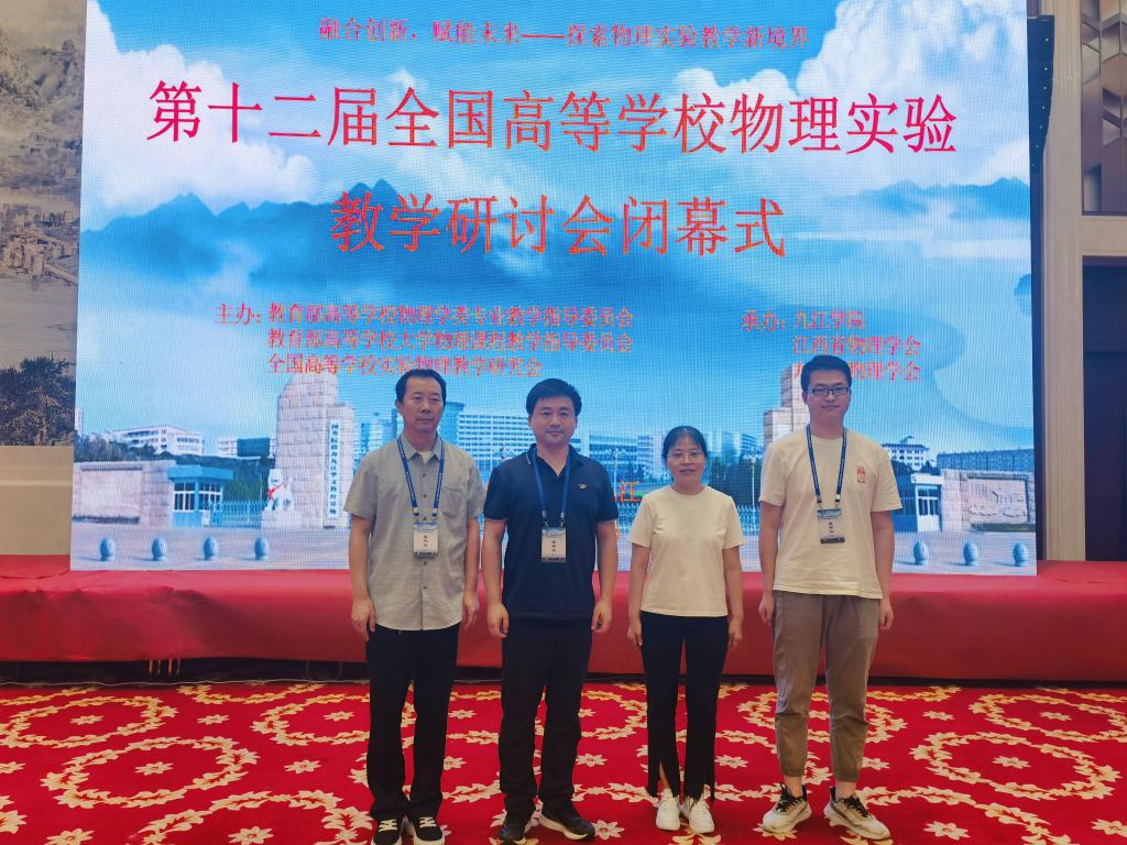 近日,第十二届全国高校物理实验教学研讨会在江西九江召开。该研讨会由教育部物理学专业教学指导委员会、教育部高等学校大学物理课程教学指导委员会、全国高等学校实验物理教学研究会主办,九江学院、江西省物理学会和九江市物理学会联合承办。来自全国146所高校和科研院所及仪器设备厂商代表共608人参会。会议对2020年以来高校教师和学生研制的物理实验教学仪器进行评比,普通物理实验教学仪器评出92件获奖作品,近代物理实验教学仪器评出30件获奖作品。