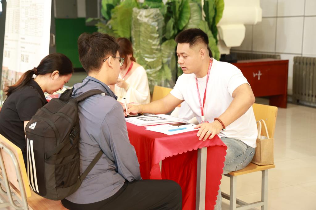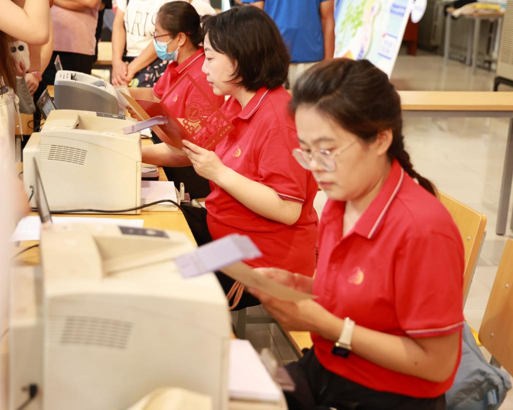 在迎新报到现场,流程咨询、资格审核、学费缴纳、助学贷款办理、户籍迁转、注册手续等报到工作井然有序。工作人员和志愿者们热情周到,为新生办理入学手续提供便捷、高效、人性化的服务。学校在报到大厅里设置了休息区,配备了饮水机等,为新生和家长提供贴心的服务。各学院在报到大厅楼下设置了新生接待点,为新生及家长提供咨询。学生志愿者们耐心地为新生和家长解答遇到的各项问题,让新生入校舒心顺心,家长安心放心。