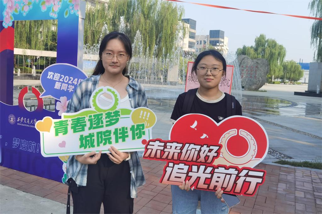 经济与金融学院的新生党英琳和张睿晋分别来自陕西和辽宁,奇妙的缘分让她们早在暑假就成为微信上无话不谈的好朋友。开学前两人更是商量好同一天来学校,一定要第一时间实现“双向奔赴”。风华正茂的青春遇到了无比契合的彼此,希望她们在未来四年的大学生活中陪伴成长,一起进步。