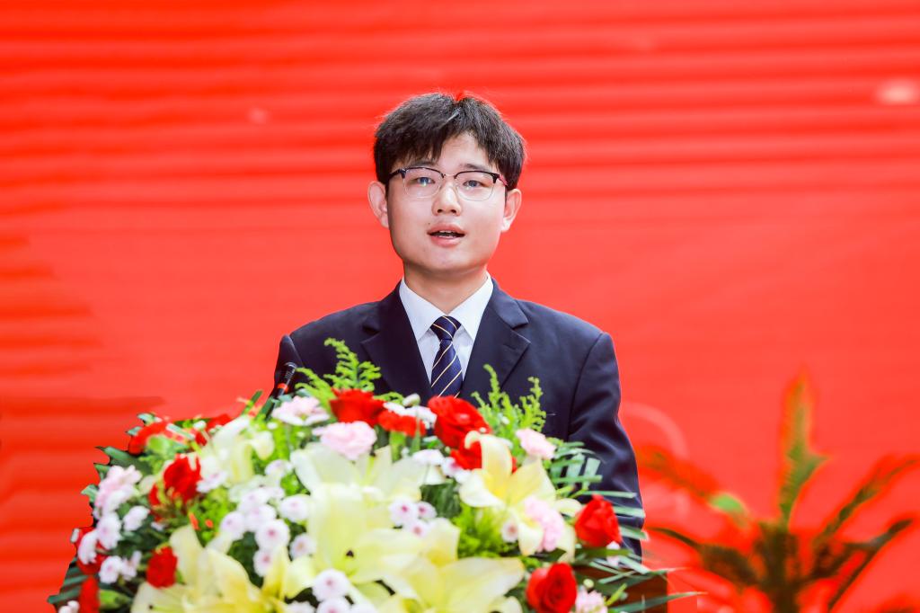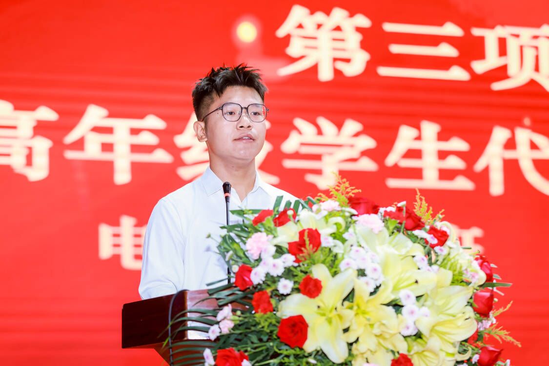 高年级学生代表、电气信息学院电信2101班杨泽远同学结合自己的学习成长经历,向学弟学妹们提出了几点建议:一要深学争优,勤学精进;二要敢为人先,锐意前行;三要脚踏实地,笃行致远,为实现梦想努力奋斗。