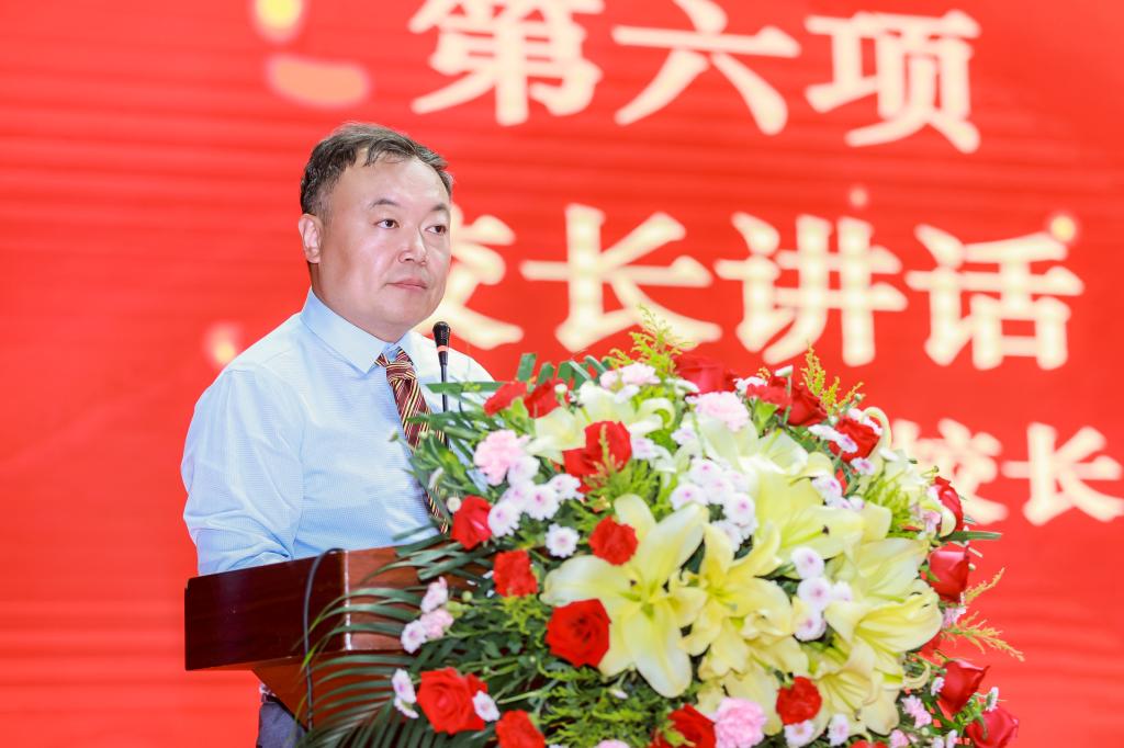 新生家长代表薛原先生祝贺同学们即将开始全新的学业旅程。他对同学们提出了几点要求和期待:一是希望同学们树立正确的人生目标和理想,指引前行方向;二是培养自立自强的品质,不断提升自我;三是树立终生学习的理念,追求卓越成长。