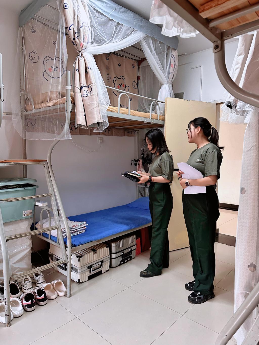 为加强军训学员军容风纪,培养其良好的生活习惯,提升自我管理能力,近日,在学校军训团政委辛红伟的带领下,作训科、政宣科及后勤保障科相互配合,严格按照相关规定对2024级军训学员的军容风纪、内务整理进行了检查。