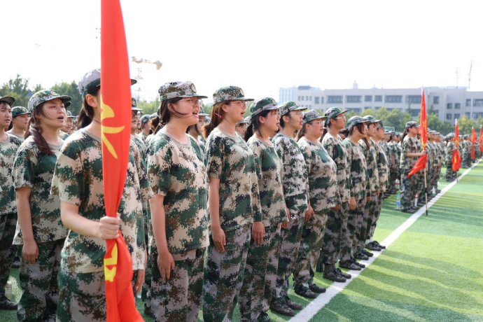 训练场上,参训学员精神抖擞、朝气蓬勃,队伍排列整齐有序。“时刻准备着!时刻准备着!尚德笃学,守正创新”,嘹亮的口号、昂扬的姿态无一不展现着城院学子蓬勃的生命力。