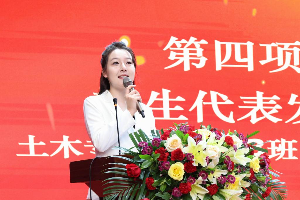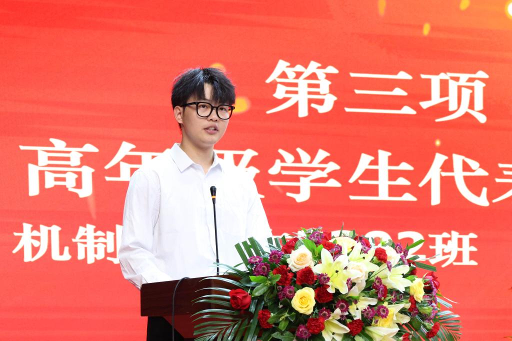 高年级学生代表、机制专升本2302 郭进进同学结合自己的学习成长经历向大家分享了自己的心得体会。他强调,成功并非一蹴而就,只有在点滴积累中厚积薄发,不懈努力,注重实践,才能架起通往成功的桥梁。他希望大家拥抱改变、逐浪前行,在437ccm·必赢国际实现自己的青春梦想!