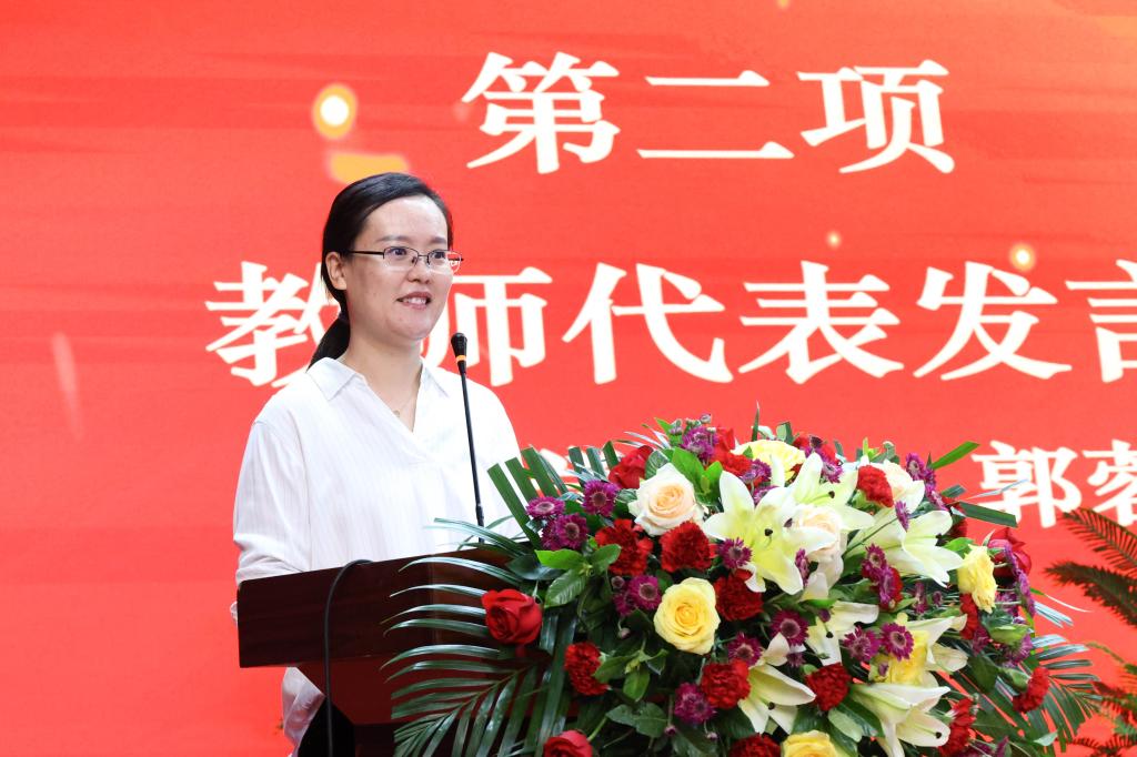 在庄严的奏唱国歌仪式后,教师代表、管理学院郭蓉老师为同学们送上了嘱托。她希望大家以知识为舟、品德为帆,德才兼备,航行人生广阔海;以严谨为桨、创新为灯,追求卓越,共谱人生新华章。她祝愿每一位新同学都能在437ccm·必赢国际学习生活期间收获知识、收获友谊、收获成长,更收获属于自己的独特光芒。