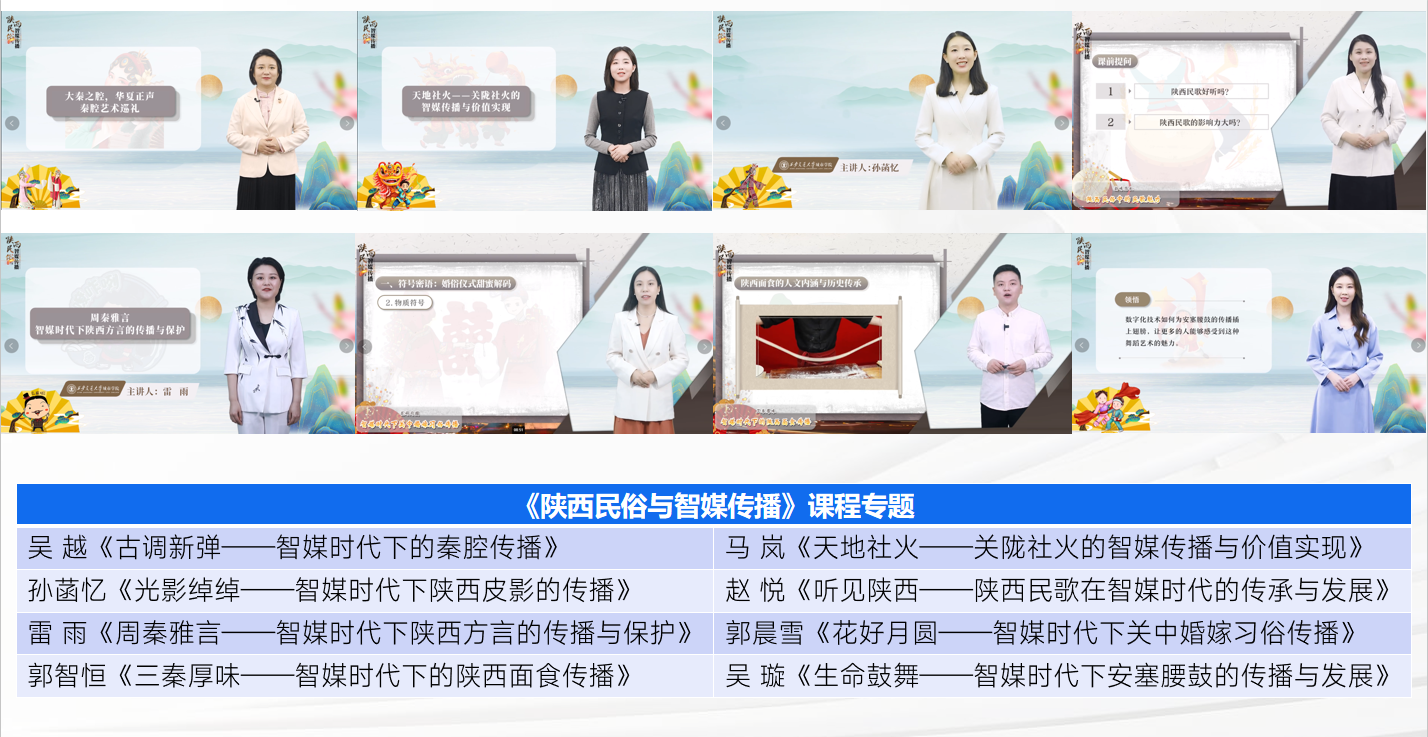 近日,由传媒学院副院长吴越副教授团队建设的陕西省教育厅首批“陕西特色线上课程”——《陕西民俗与智媒传播》课程在超星慕课平台与学习通APP上线。